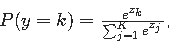 ,其中 zk 是第 k 个类别的线性组合结果,K 是类别总数。