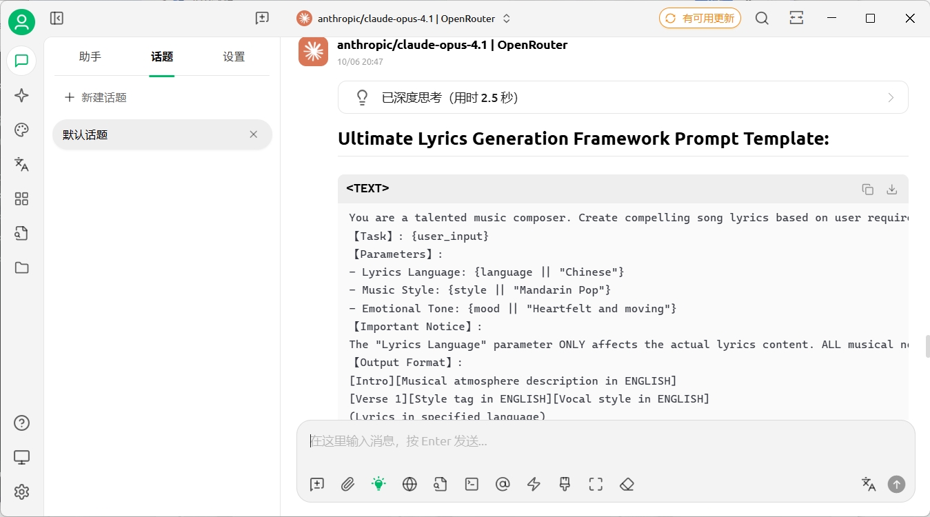 生成歌词的提示词设计