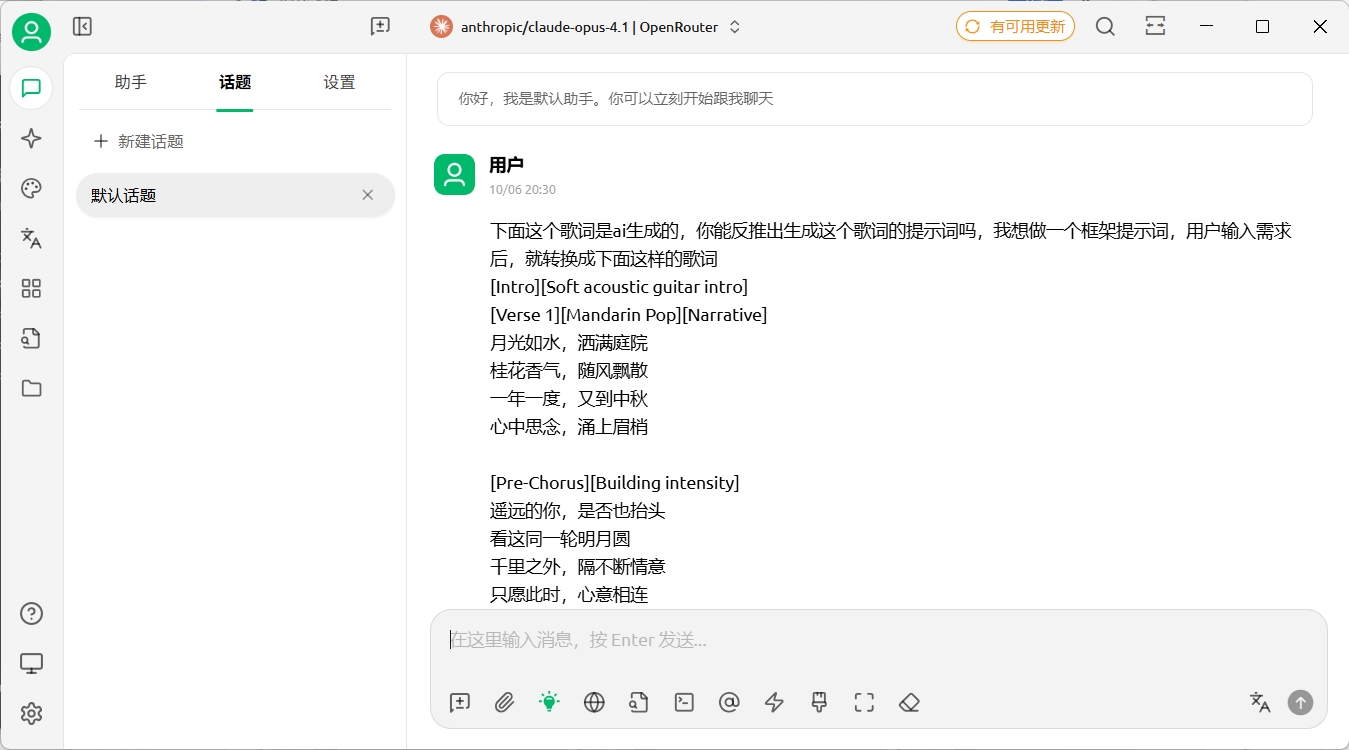 1,用户输入,使用deepseek生成歌词