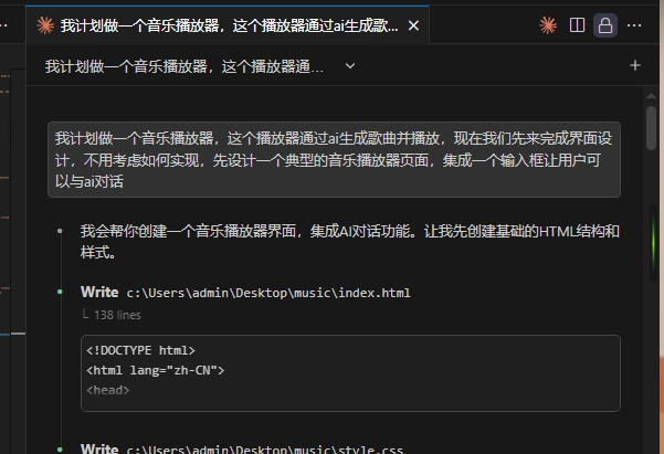 结论放前面:通过CLI Agent,实现一个对话生成歌曲的小应用。过程我只负责设计了一套提示词,以及粘贴了一些文档。