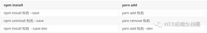 yarn改变了一些npm命令的名称,比如 yarn add/remove,感觉上比 npm 原本的 install/uninstall 要更清晰