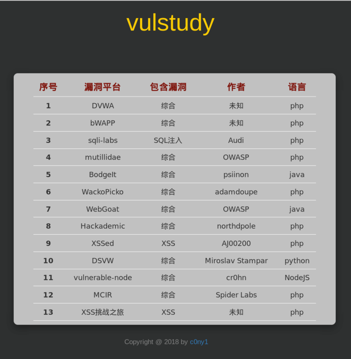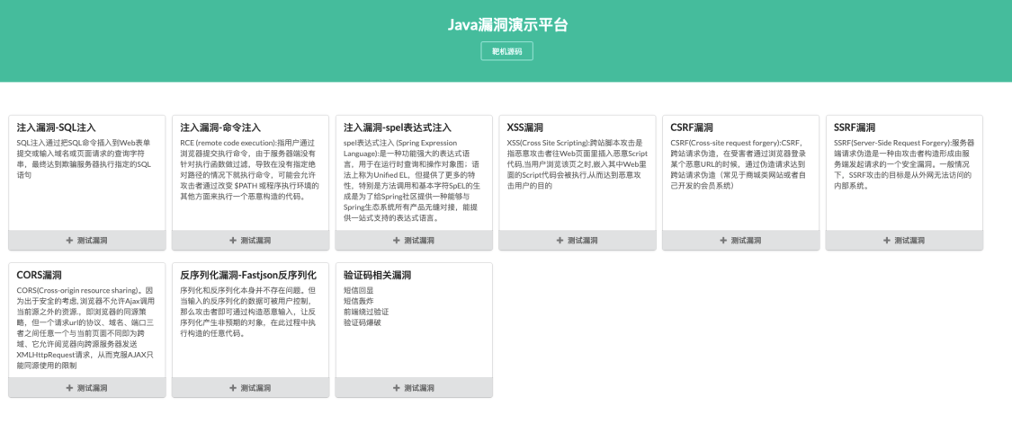 如上介绍的这些项目,大部分都是跟DVWA类似,可能使用完一次之后就失去了作用,而且启动的流程比较繁琐,虽然有的配套了docker环境,但还是缺乏扩展性