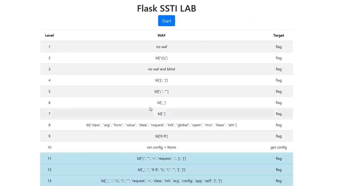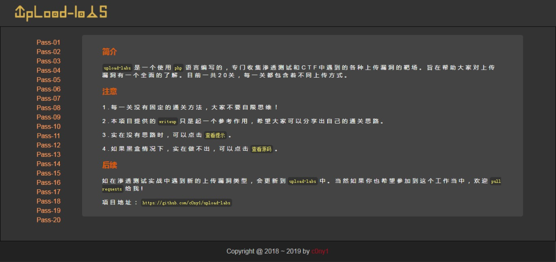 不足的地方在于这种界面和模式对于文件上传比较合适,因为文件上传的每个界面都差不多,只需要有一个文件上传的按钮即可。但是对于安全开发的靶场来说每个题目的环境可能都是不一样的,所以相关的界面定制化比较多
