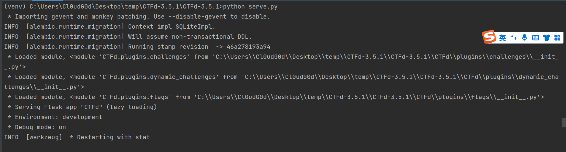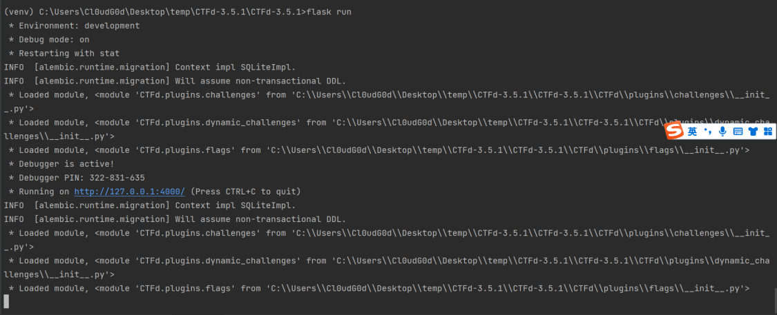 * Loaded module, <module 'CTFd.plugins.dynamic_challenges' from 'C:\Users\Cl0udG0d\Desktop\temp\CTFd-3.5.1\CTFd-3.5.1\CTFd\plugins\dynamic_challenges\init.py'>