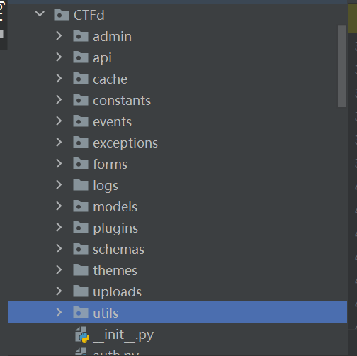 CTFd ├──conf 配置文件,这里面是nginx的配置 ├──CTFd 网站主要源码 ├──migrations flask数据库迁移文件 ├──scripts docker安装相关的脚本,具体的操作后面进行分析 └──tests 测试代码