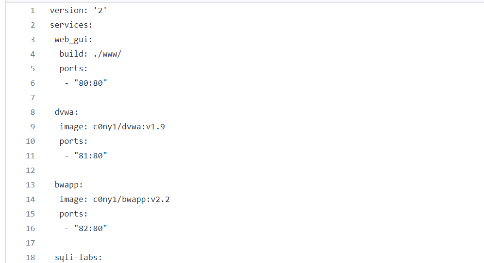 都是通过docker-compose.yml文件来进行控制,把不同靶场的80端口映射出去