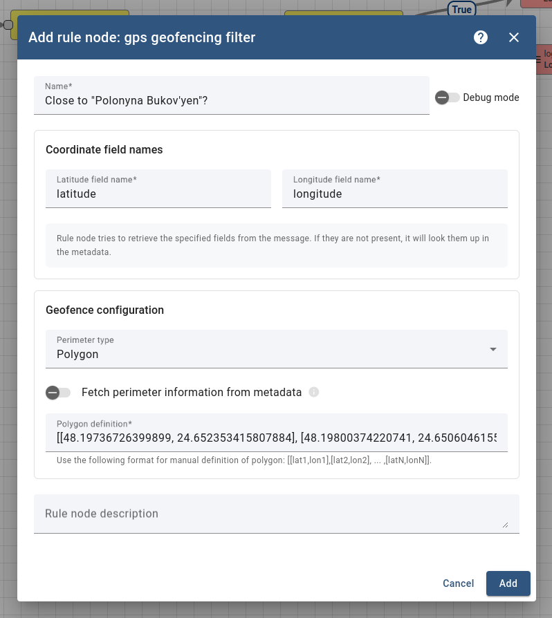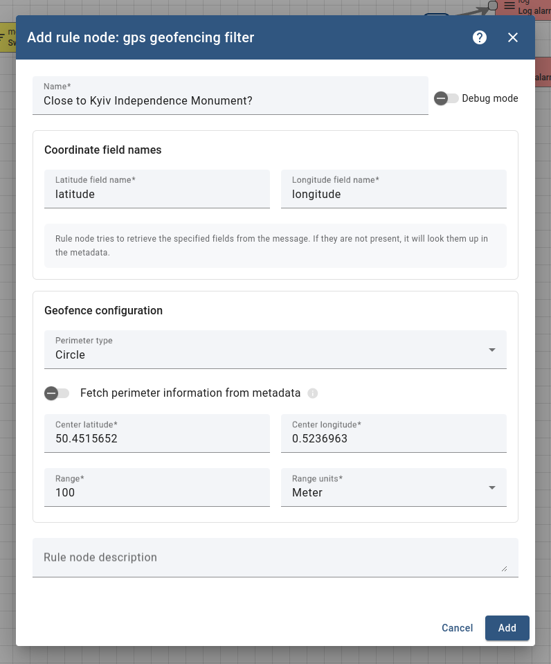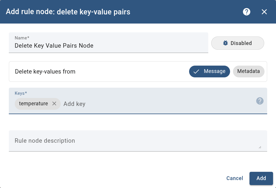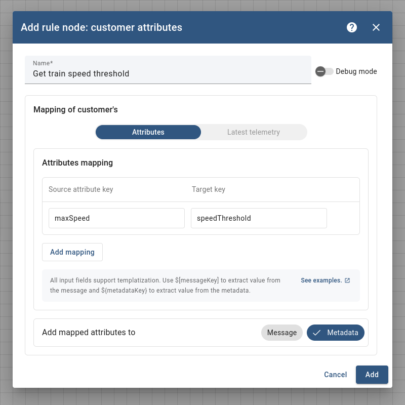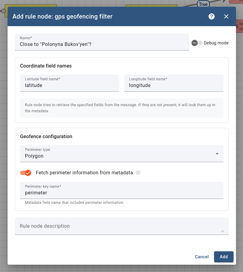 使用服务器时间戳(Use server timestamp)- 如果启用,当时间序列数据没有与其关联的显式时间戳时(使用有效负载格式 1 ),规则节点将使用当前服务器时间。