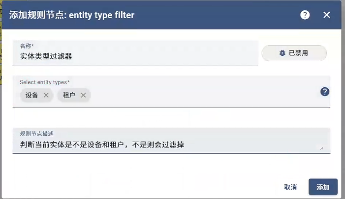 - 选择实体类型——用于过滤消息的实体类型列表:设备、资产、用户等。