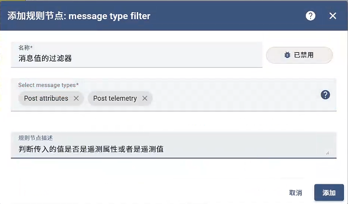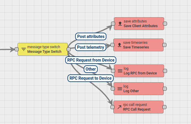 注意:规则节点的输出连接与消息发起者的实体类型相对应。例如:“设备”、“资产”、“用户”等。