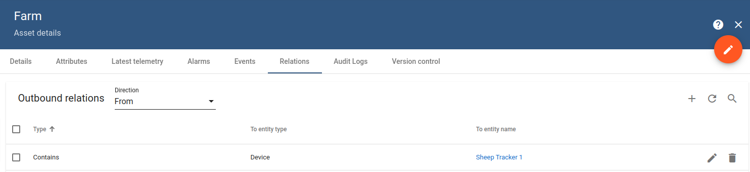 假设您在办公室和仓库内都安装了温度传感器。在数据处理过程中,您可能需要确定传感器是位于办公室还是仓库。为此,您应该配置“OfficeToDevice”关系,将办公室资产与位于办公室的传感器设备关联起来。