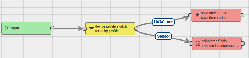 注意:规则节点的输出连接与设备配置文件名称相对应。例如:“温度传感器”、“湿度传感器”等。