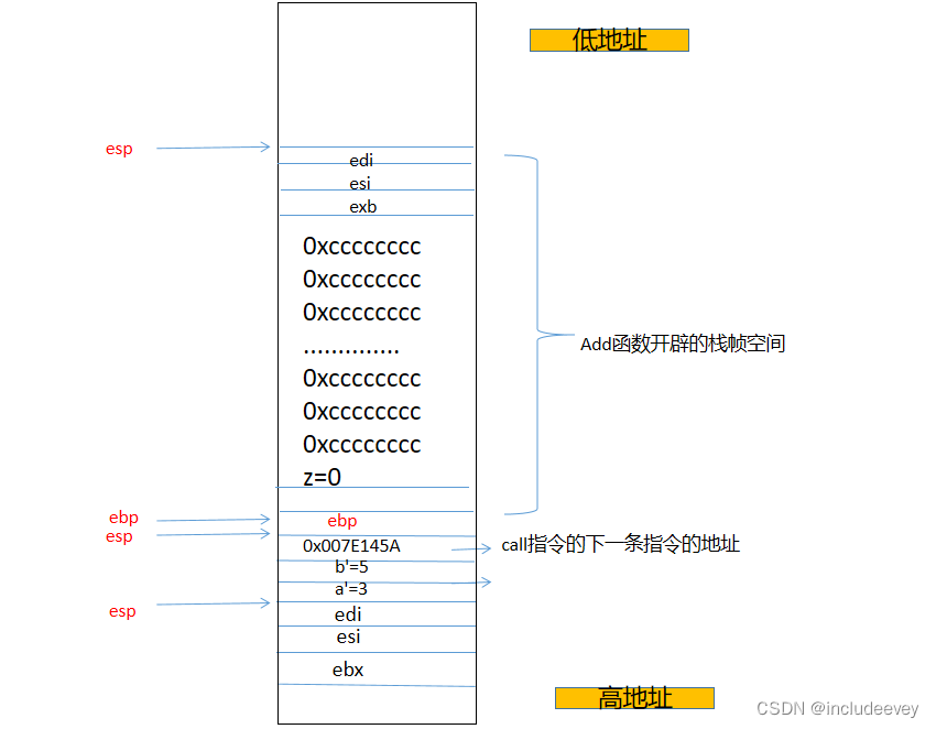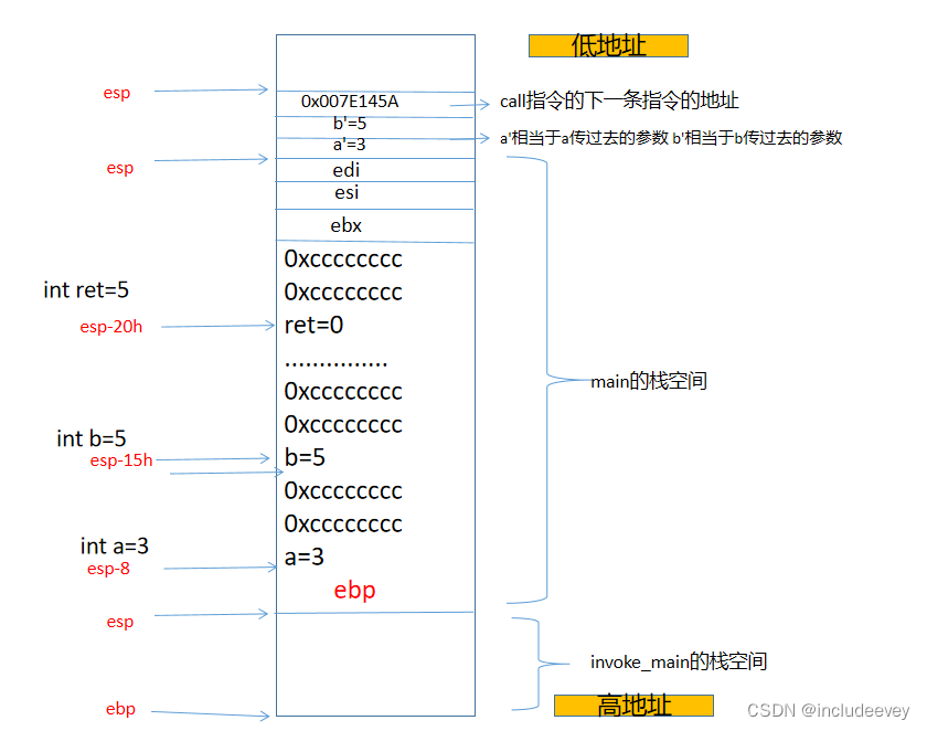 //以上就是对a,b,ret在main()函数栈帧中进行初始化