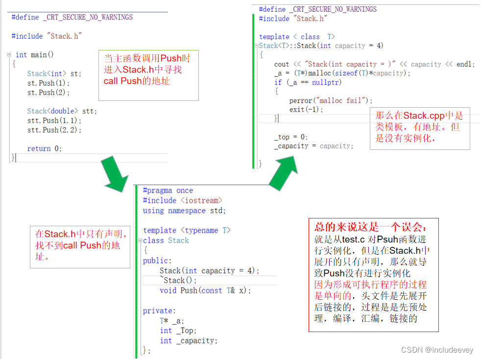 不分离定义到两个文件中--将Stack.cpp文件的代码写入Stack.h中
