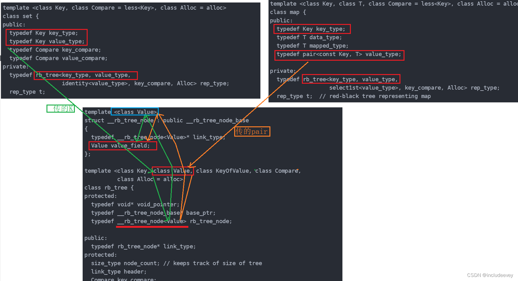 map与set主要是对RBTree的封装使用 ,这里需要比较难以解决的就是set的迭代器不被const修饰,而map是需要const与非const修饰。而且他们同时复用的一棵树这是比较棘手的。