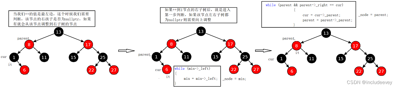在该段代码中新增的迭代器,主要难点是operator++和operator--。