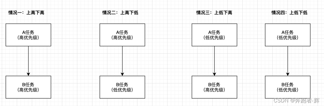 针对情况三:上低下高:当新开发一个B任务需要依赖A任务,B任务很重要,但是发现A任务优先级并不是很高,那么这个时候就需要依靠合理的算法推导出A任务为高优先级并进行更改。