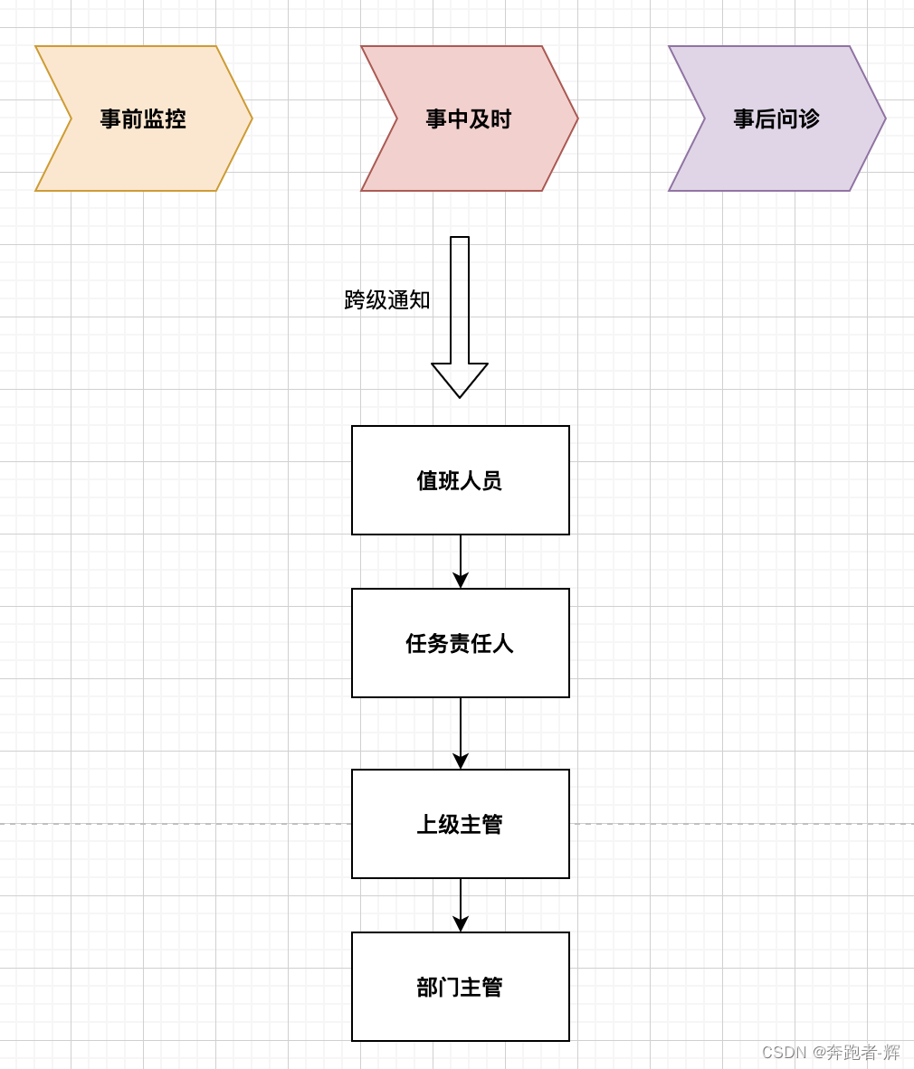 在保证了告警通知的基础下,还需要保证值班的质量效率,需要值班人员具有责任意识,及时处理问题才能真正的保证及时性,所以制度中需要引入事后问责形成完成的链路闭环保障真正的及时,因此还需要保障事中及时,这需要在告警和值班制度的基础上引入跨级通知的流程。
