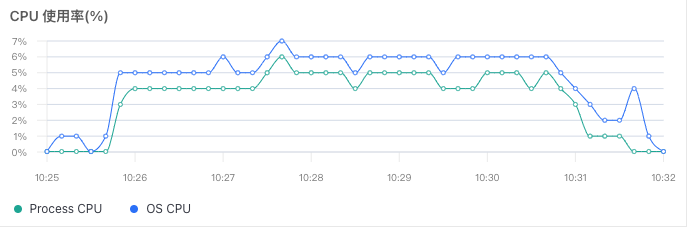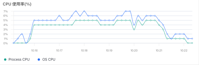 下图是对 CPU 的监控,可以看到各个模式对 CPU 的使用是基本相近的。