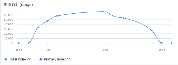 即每秒 10 个并发请求,持续压测 120 秒,每个 bulk 请求包含写入 5000 个 doc,对单个索引进行压测。