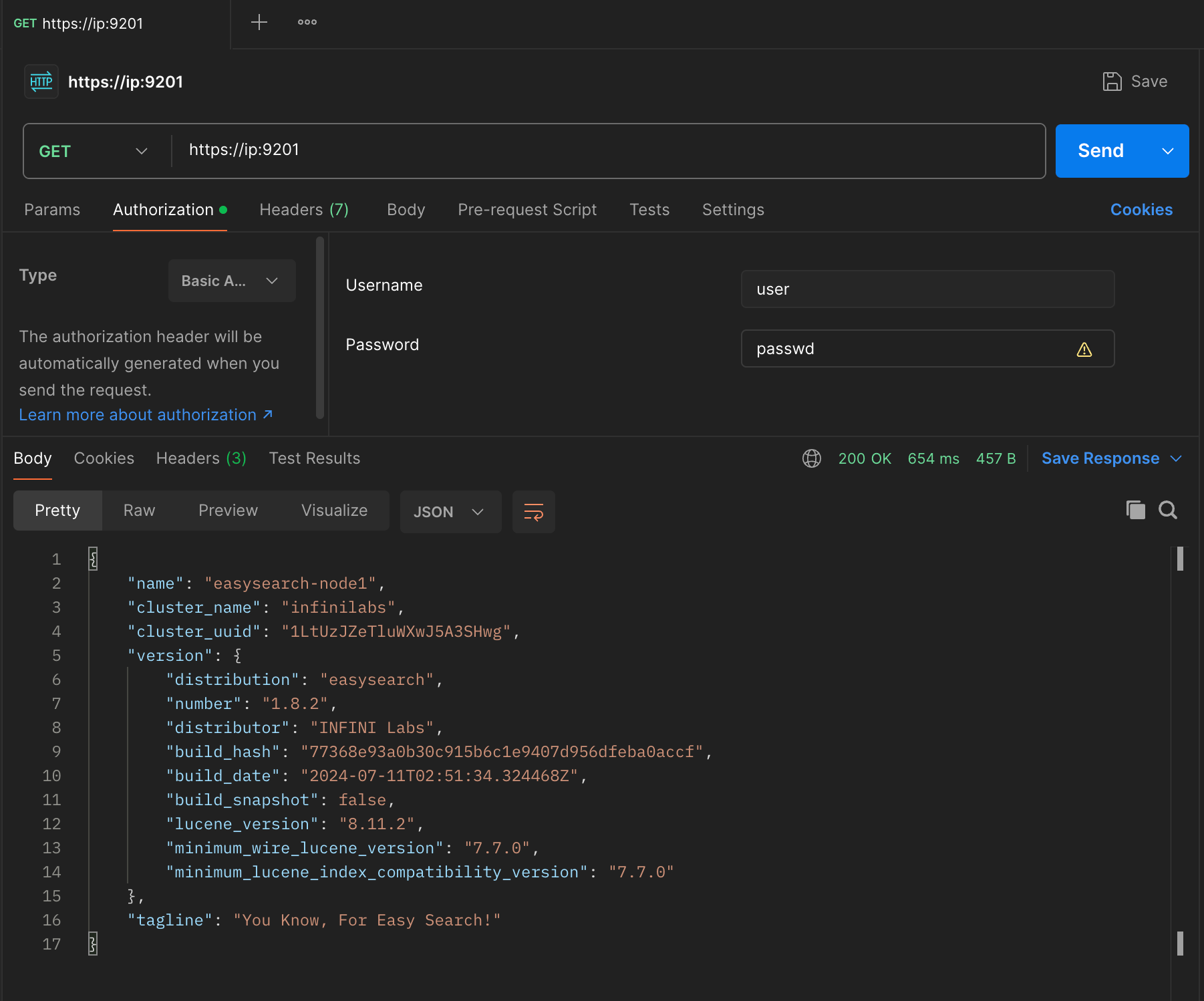 REST API 是与 Easysearch 进行通信的常用方式。通过 REST API,开发者可以发送 HTTP 请求来执行各种操作,包括索引文档、搜索数据等。以下示例展示了如何在 Python 中执行 REST 查询。
