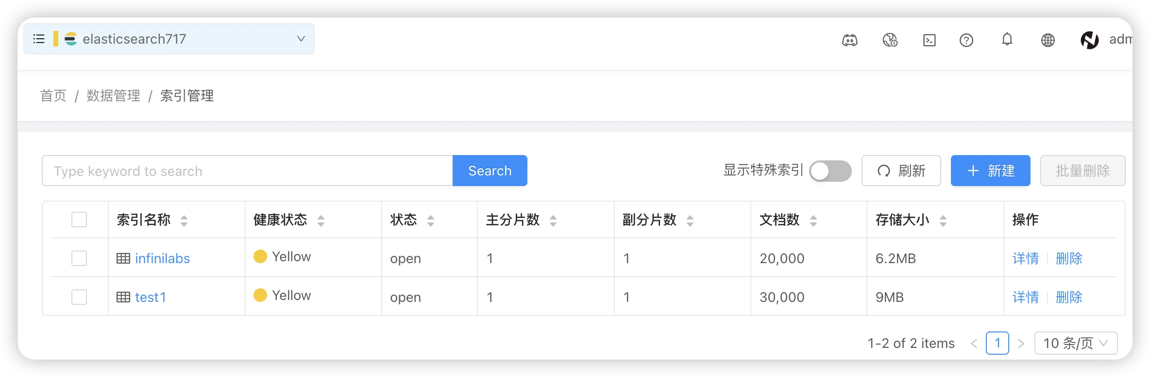 在 Elasticsearch 集群中选择目标索引:infinilabs 和 test1,没错,我们一次可以迁移多个。