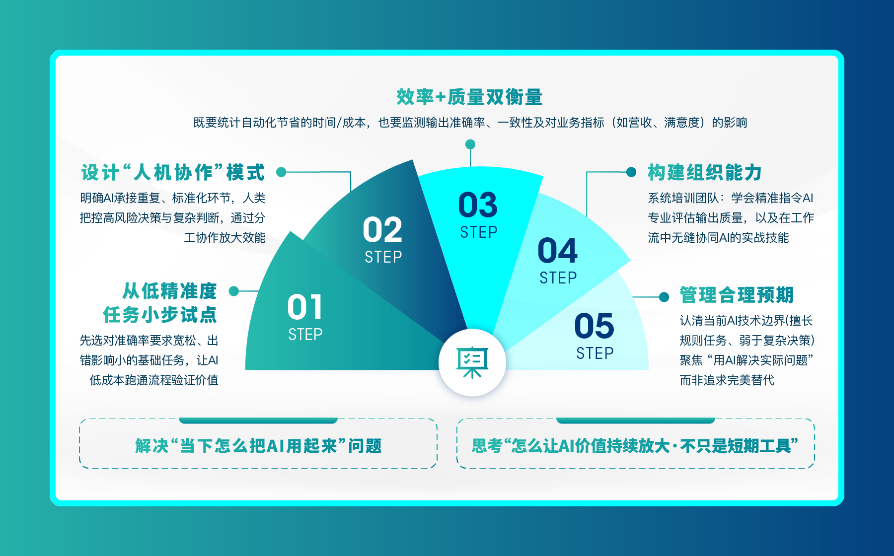 智能体不是“替代人类”,而是“解放人类”。“设计‘人机协作’模式”直击管理层对“风险与效率平衡”的核心诉求。