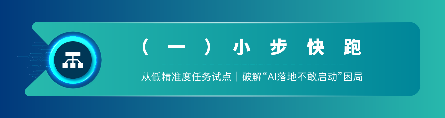 许多企业管理层对智能体落地的最大顾虑,是“投入大、风险高、效果不可控”。对此,“从低精准度任务小步试点”是破局的第一步。