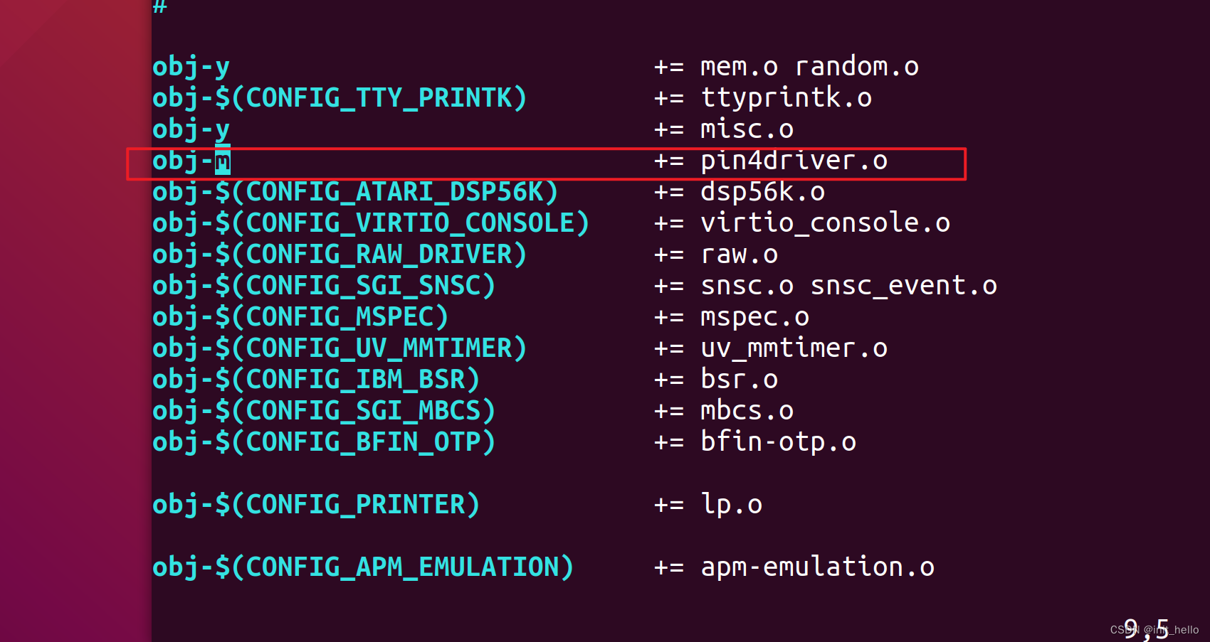 将这个代码在虚拟机上拷贝到linux内核的/drivers/char字符驱动目录下,为了使该驱动文件能够被编译到,这里需要修改Makefile,Makefile文件的意义在于自动化构建项目,也就是为了更简便地执行程序,Makefile文件描述了整个工程所有文件的编译顺序、编译规则,它存在于项目的根目录下,并且可以在项目的任何子目录中存在,但通常在项目的根目录下创建或维护。