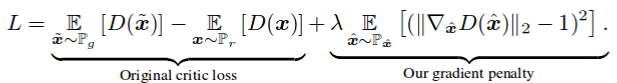 作者在损失函数中引入了一个简单的 gradient penalty,从而缓解了上述问题。此外,与最初的 WGAN 实现一样,保留了 1-Lipschitz 连续性。