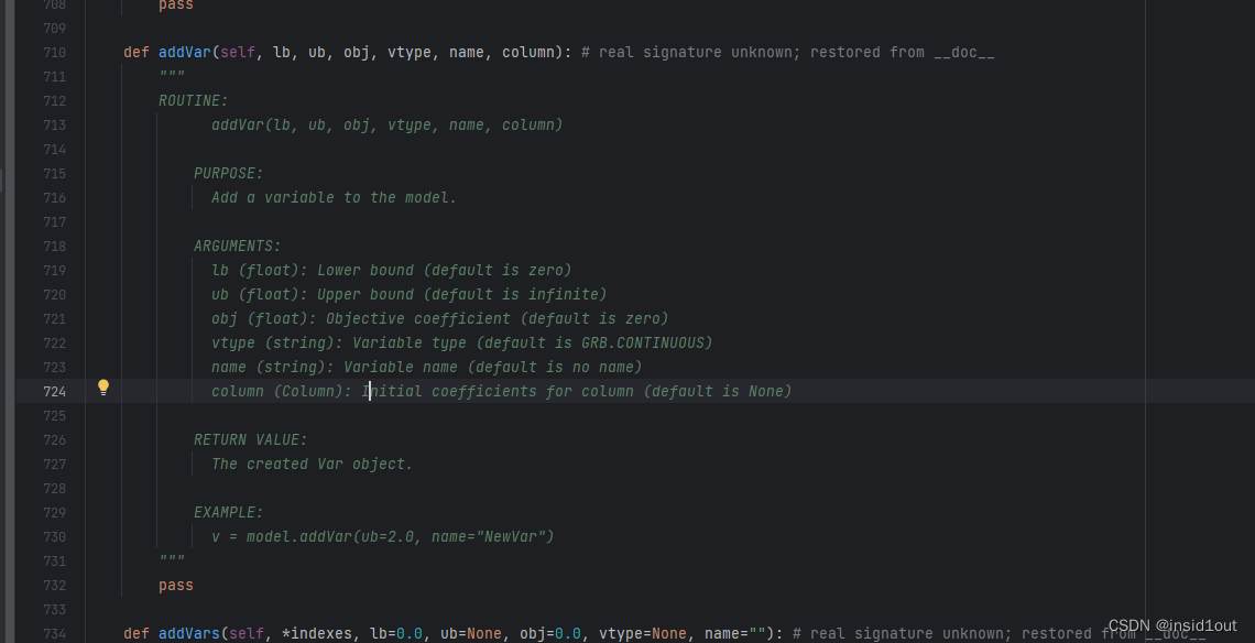 学习gurobi 看到很好的注释格式