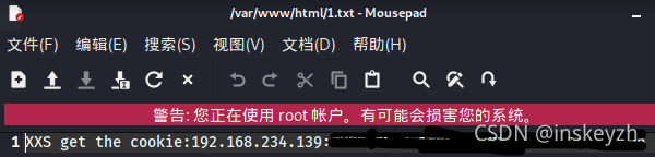 我们返回kali主机,发现在目录var/www/html下生成了一个“1.txt”文件