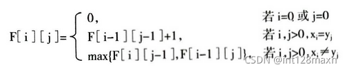 定义状态f[i][j],表示序列X的前i个元素和序列Y的前j个元素的最长公共子序列长度。状态转移方程为