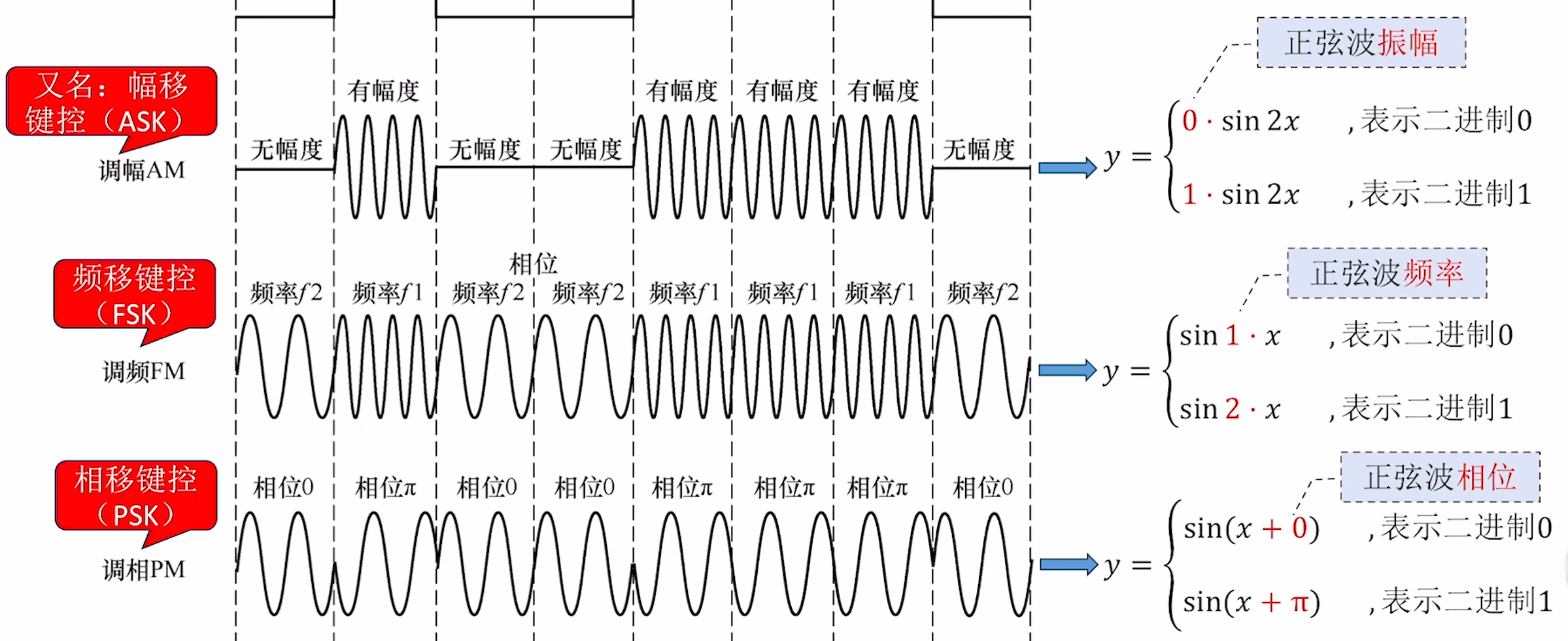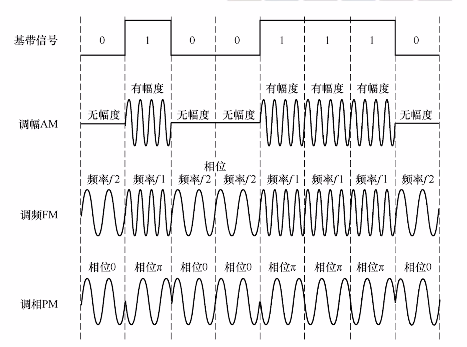 调制信号:若需要远距离传输,需将基带信号“搭载”在高频载波上(即 调制),形成可