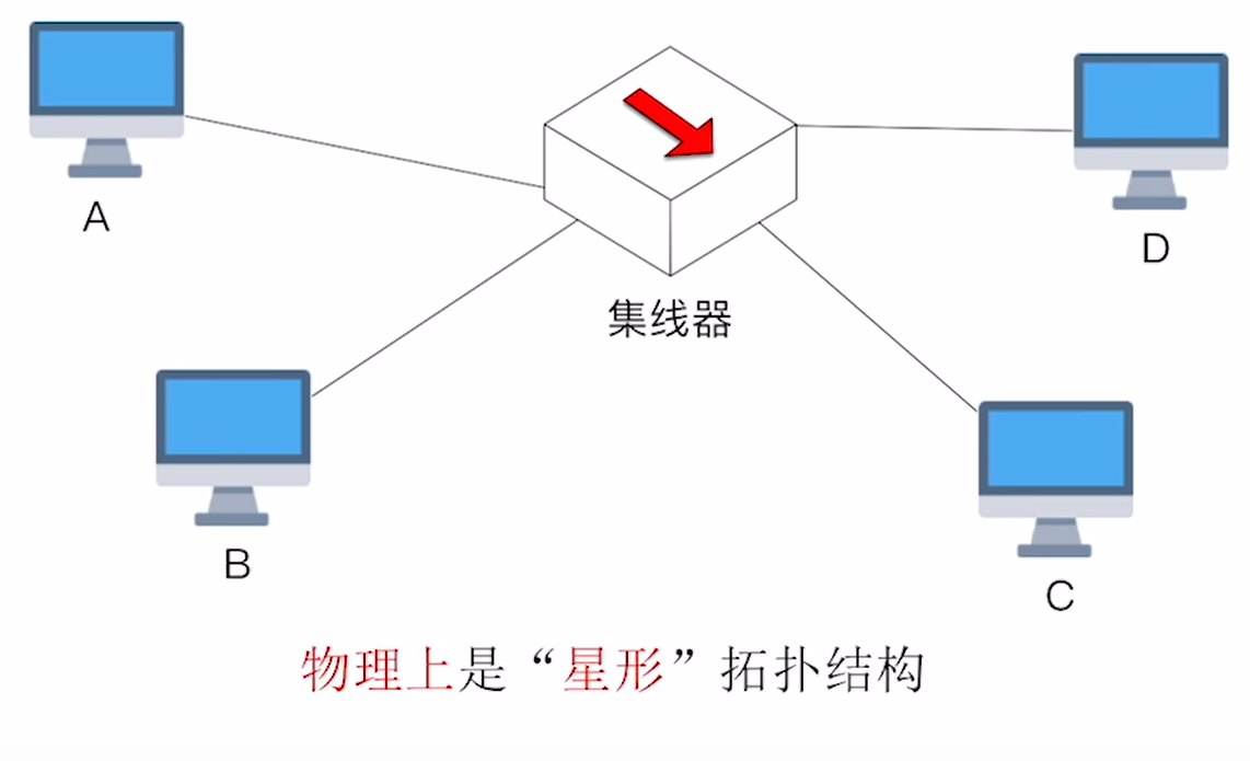 2. 集线器 连接的网络,物理上是 星型拓扑,逻辑上是 总线型拓扑