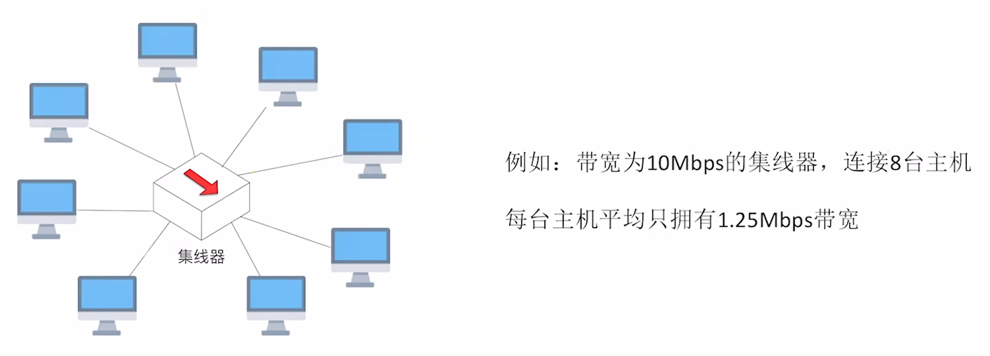 各端口连接的结点不可同时发送数据,会导致“冲突”