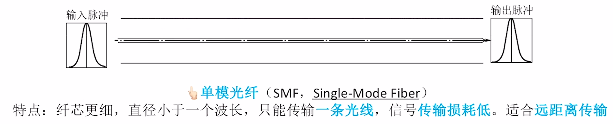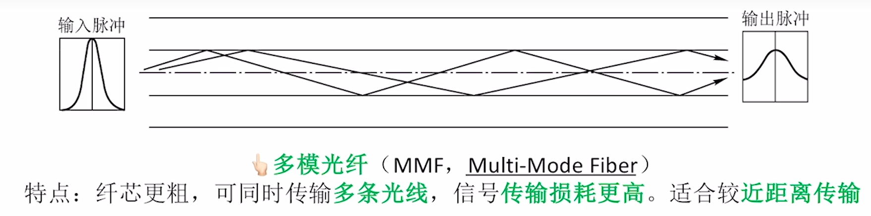 单模光纤:只有一条光线在一根光纤传输,适合长距离传输,信号传输损耗小
