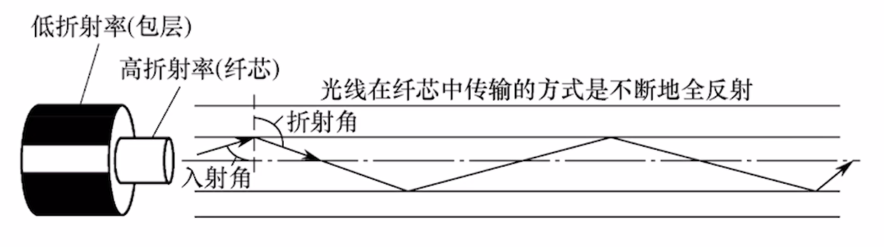主要构成:纤芯(高折射率)+ 包层(低折射率)