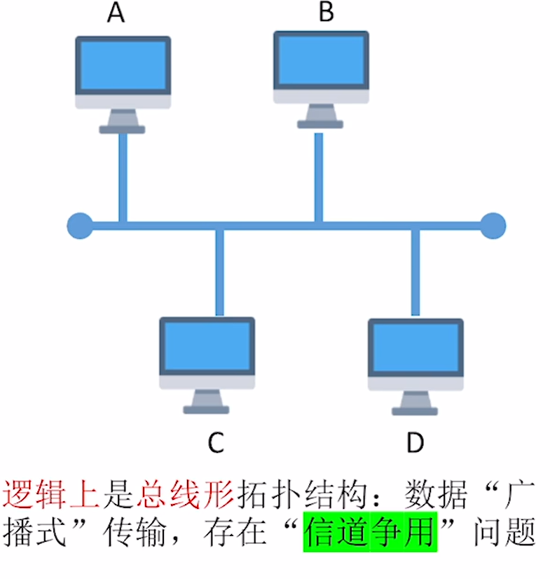 仅支持 半双工通信(两端连接的节点 不可同时发送数据,会导致“冲突”)