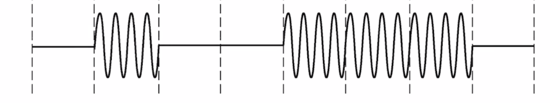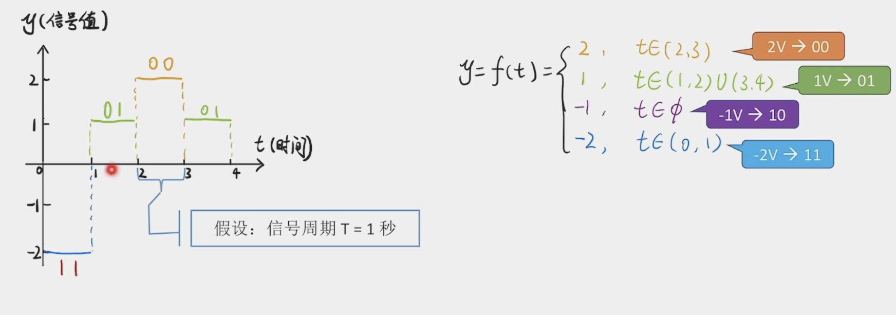 在一个信号周期内可能出现2个信号,每个信号对应一个二进制数(1bit)