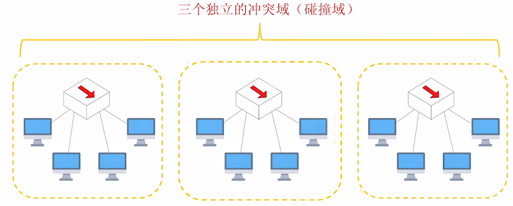 冲突域:如果两台主机同时发送数据会导致“冲突”,则这两台主机处于同一个 "冲突域"
