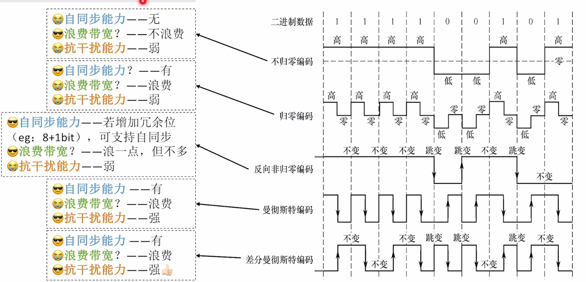 自同步能力:信源 和 信宿 可以根据信号完成“节奏同步”,无需时钟信号