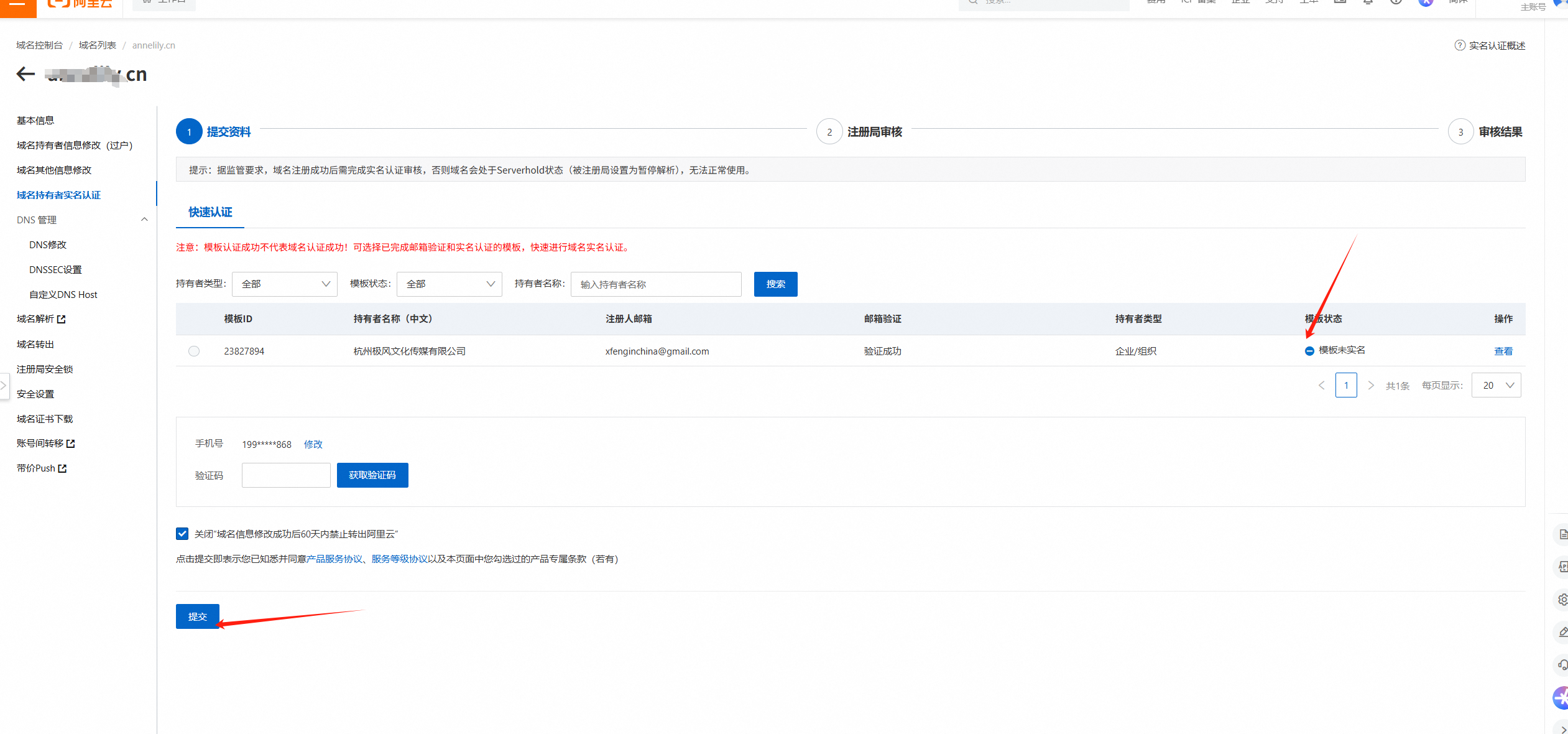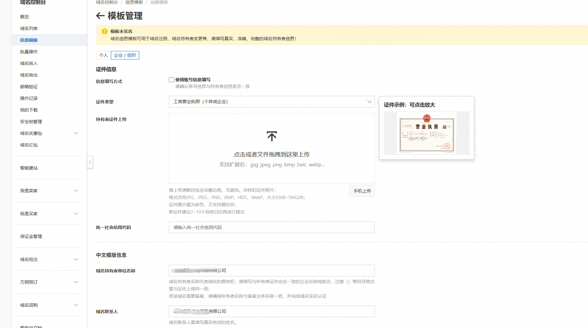 - 提交的证件信息需清晰、完整,与域名持有者信息一致。
