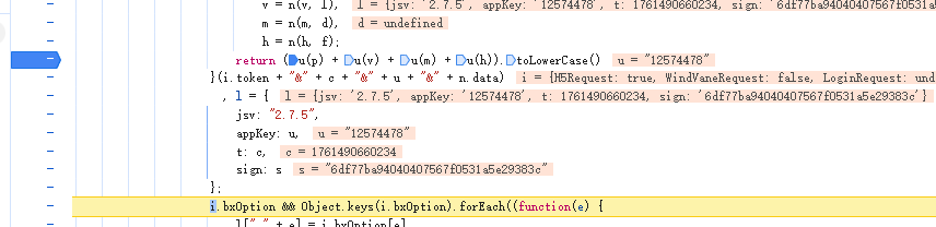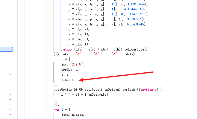 3,点进去后,就找到这个sign值,但是这个sign值是s值赋值的,所以我们需要找s值