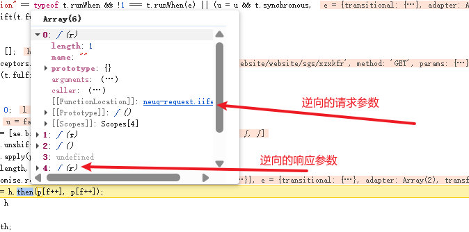 2,因为先逆向的是请求参数,所以需要从第一个成功回调的函数的0索引函数进入,如果逆向的是响应参数就需要从4号索引进入