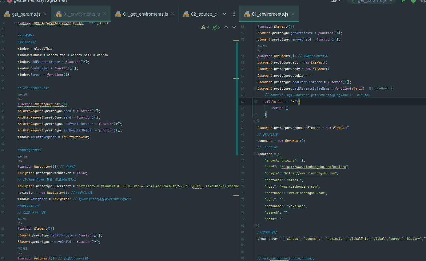 所以我们需要将浏览器和node之间的环境差异给它补齐,这就是所谓的补环境