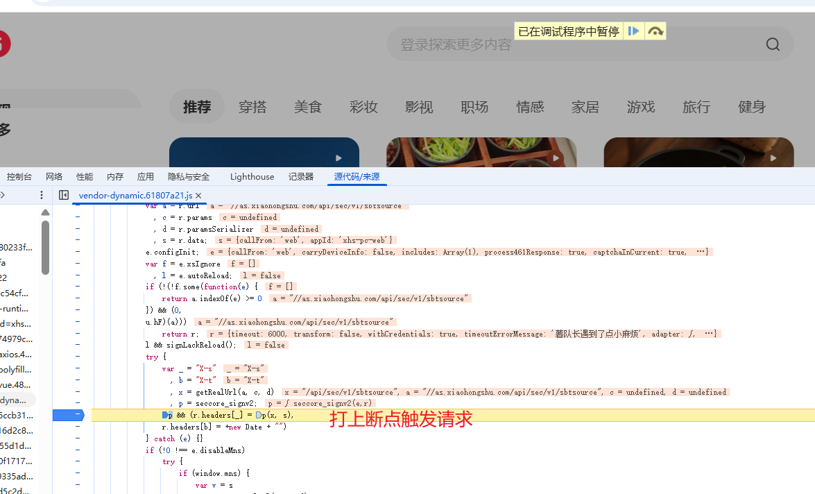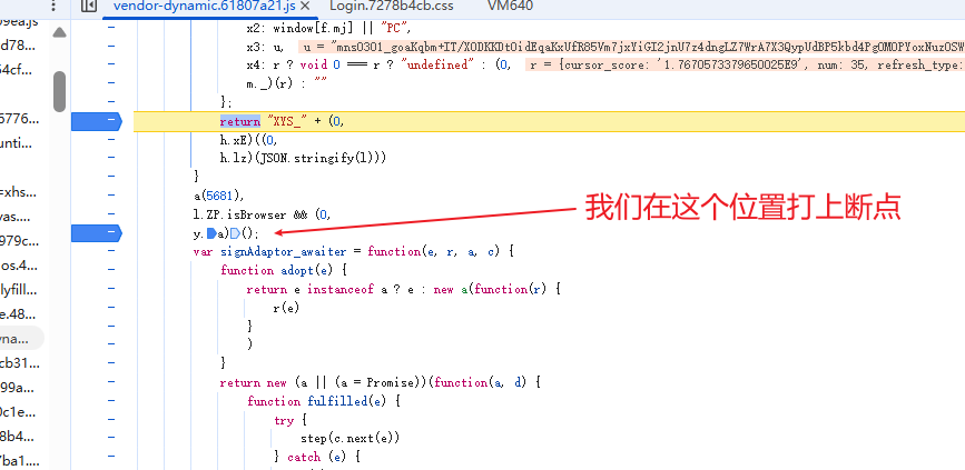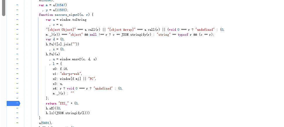 5,在控制台打印这个返回结果,可以确定x-s的加密生成位置就是这里