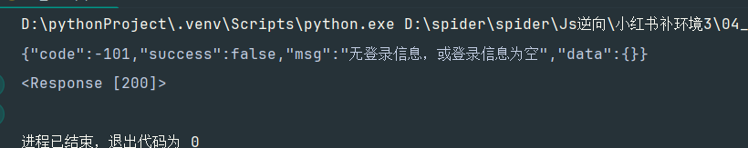 py代码的打印结果,因为我没有携带cookie,所以没有出数据,但是打印状态码是200说明补的还是没问题哈