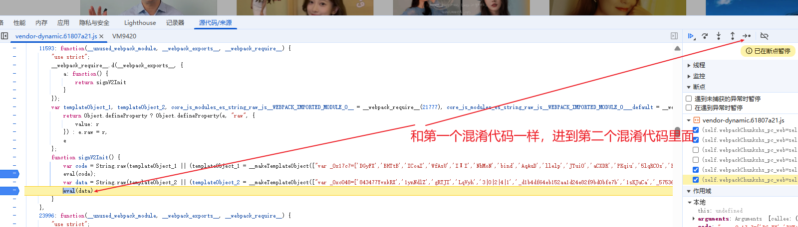9,首先我们需要定位到这个window里面的mnsv2方法,在这个位置打上断点后刷新网页触发请求