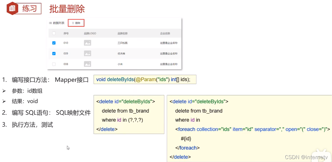 5 Array:封装成Map集合 一定要使用@Param注解,替换Map集合中默认的arg键名