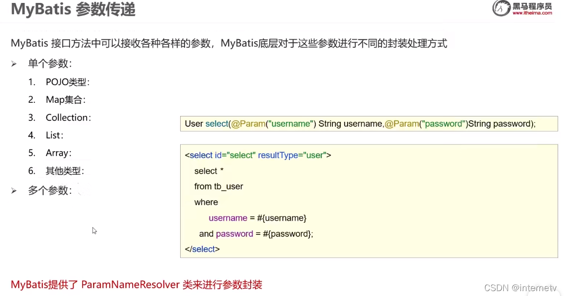 3 Collection:封装为Map集合 一定要使用@Param注解,替换Map集合中默认的arg键名